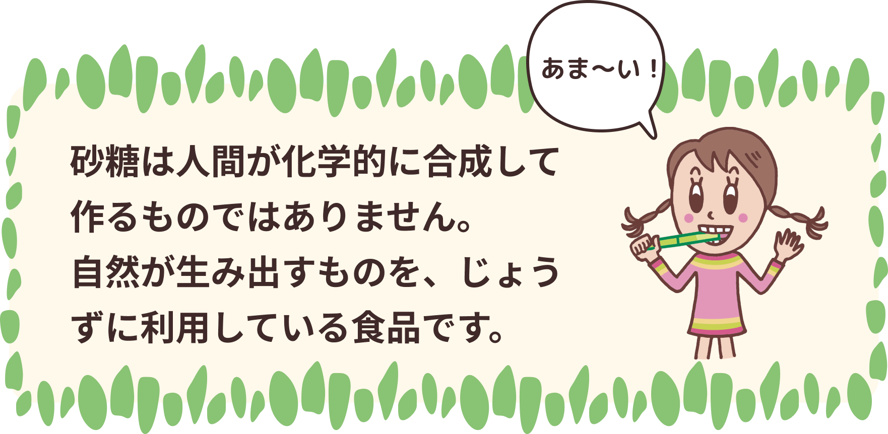 これを取り出したものが、私たちが料理やお菓子に使っている砂糖です。