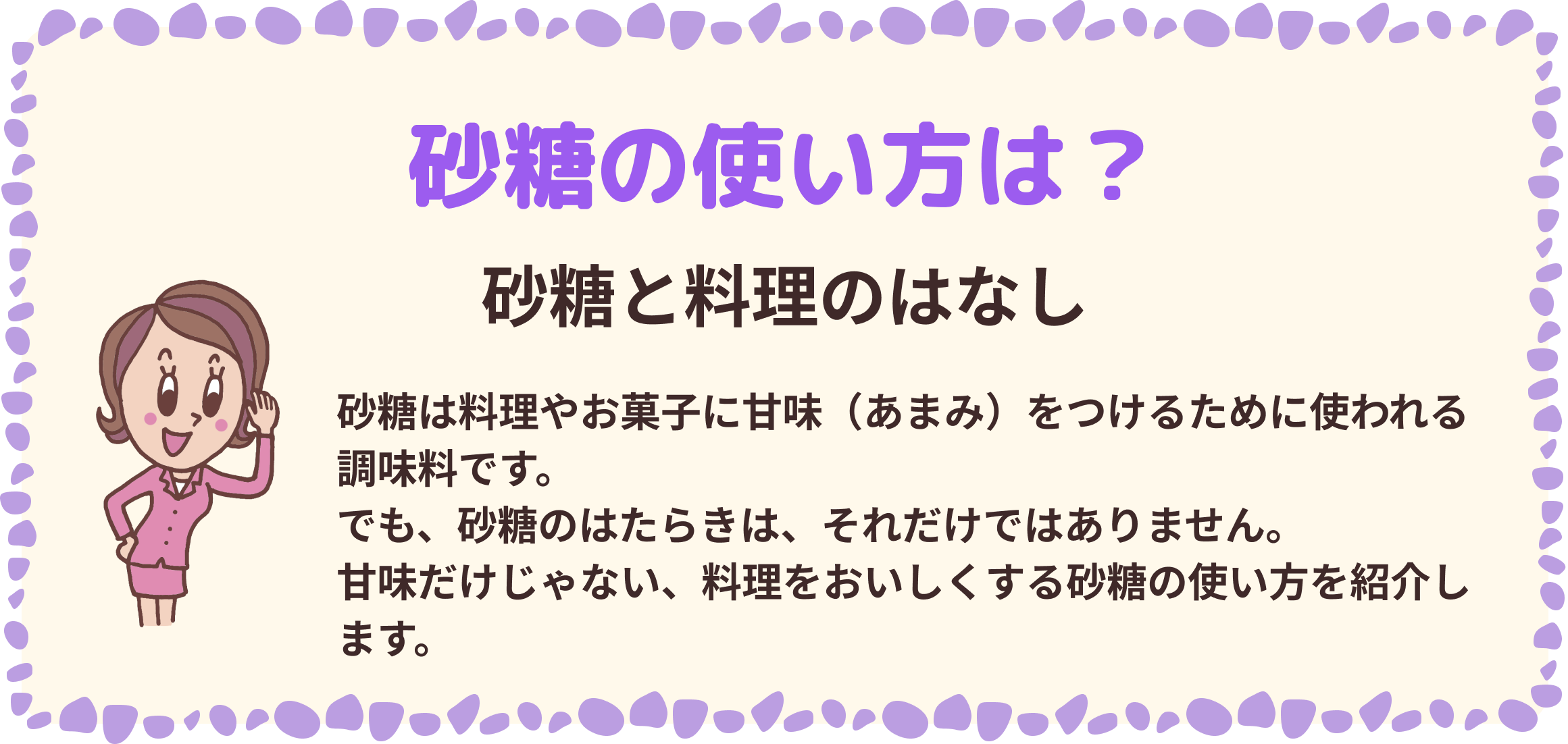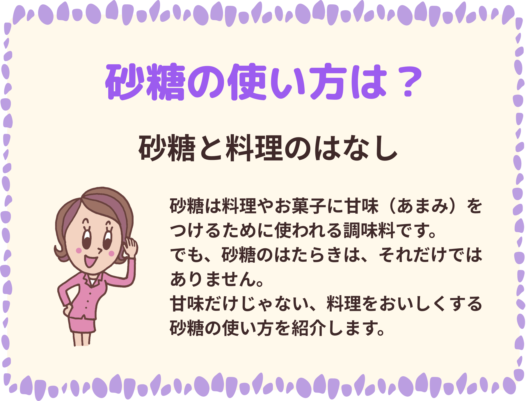 砂糖の甘味は魚や肉などの臭みを消して食べやすくする効果があります。