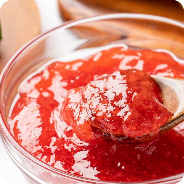 砂糖が食材の持つ水分をかかえこむことでペクチンがゼリー化し、とろみがでてきます。