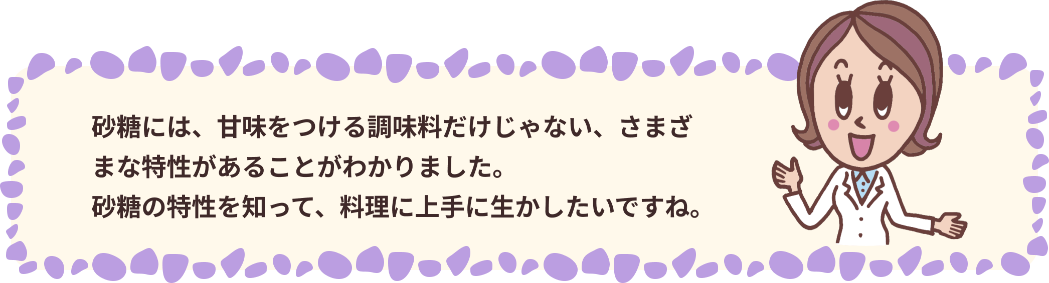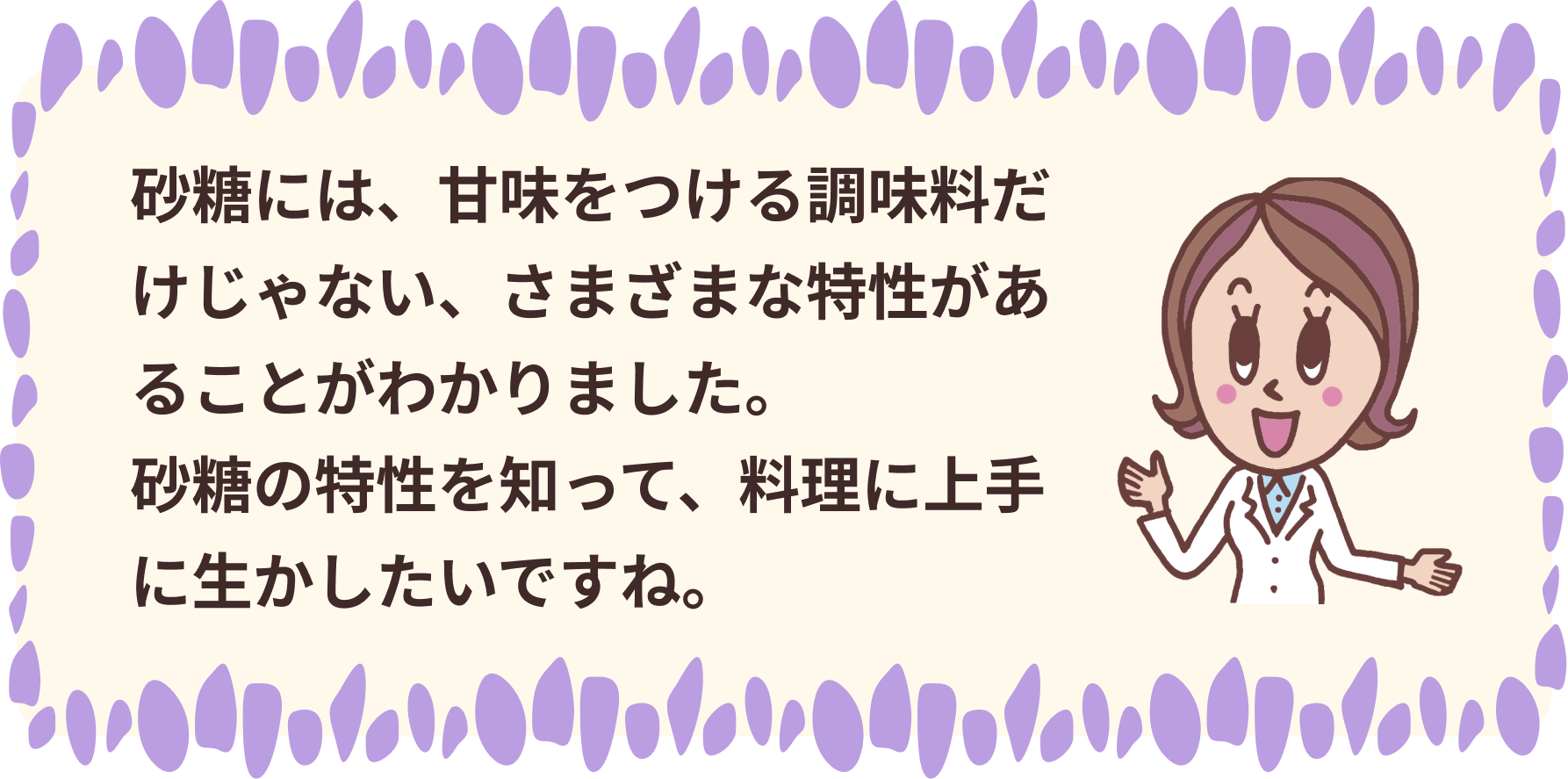 砂糖の分子は大きいので、食材にゆっくり味がしみこみます。