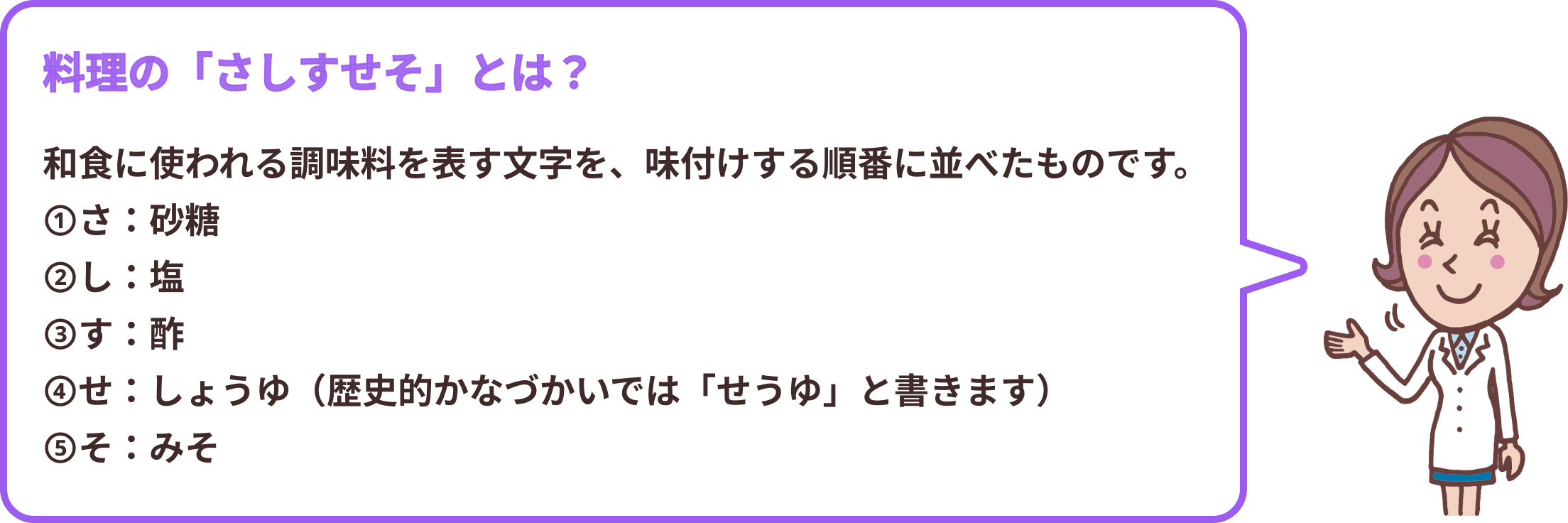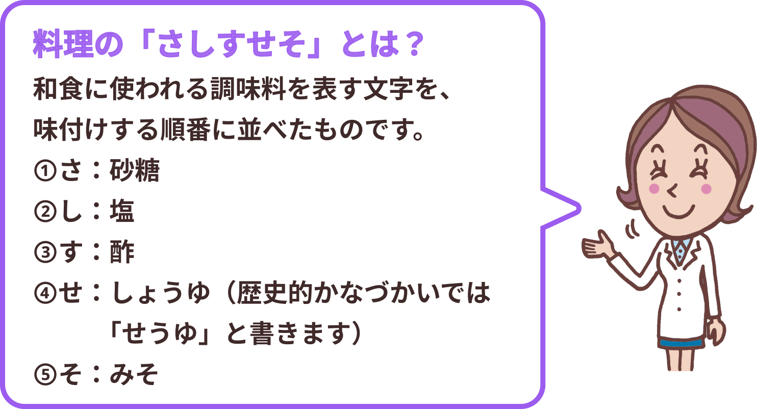 煮物などでは、砂糖を最初に、次に塩、風味を生かしたいしょうゆやみそは最後に入れましょう。